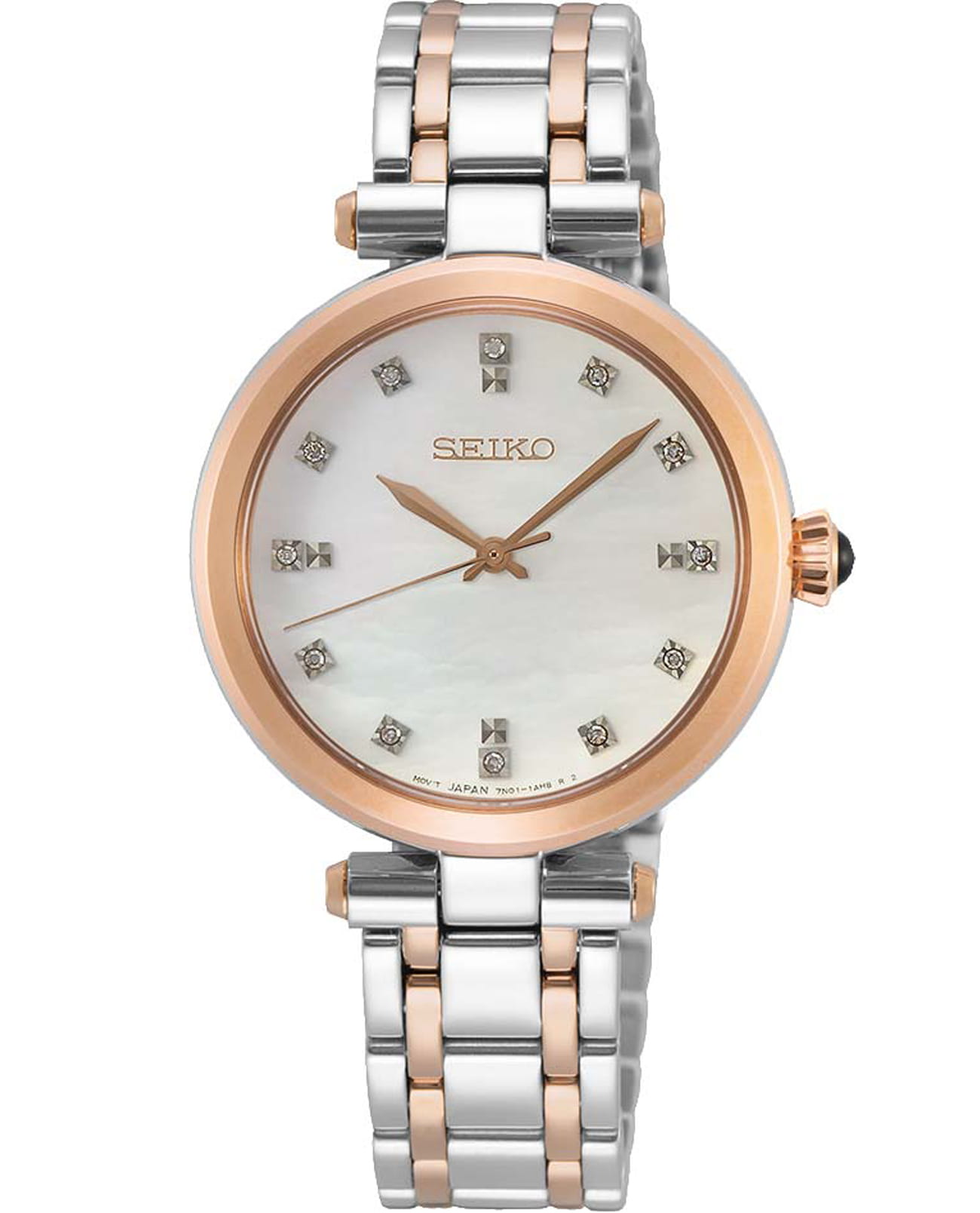Японские женские часы с бриллиантами Seiko Conceptual Series Dress SRZ534P1, кварцевый механизм с высокой точностью. Сапфировое стекло устойчивое к появлению царапин, обладающее высокой прозрачностью. Класс водозащиты: 50 метров, позволит защитить корпус от случайных брызг или капель дождя. Корпус часов изготовлен из стали, цвета.