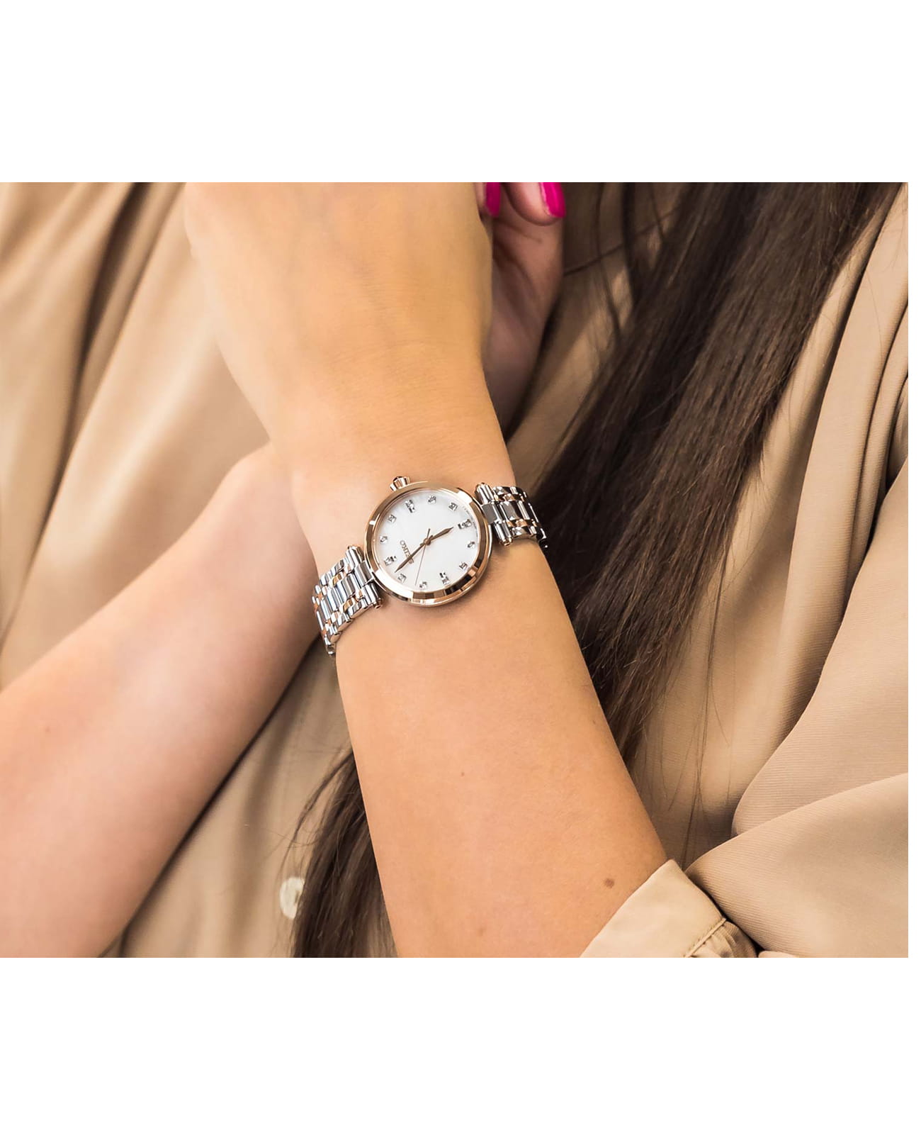 Раскладная застежка с фиксатором — это складной механизм, который прячется внутри браслета. Когда часы закрыты на руке, сама застёжка почти не видна, поэтому браслет выглядит цельным и аккуратным.