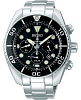 Аксессуар привлекает сдержанным серебристо-чёрным исполнением в дайверской тематике. Этому способствуют однонаправленно вращающийся безель, заводная головка с защитой, завинчивающаяся задняя крышка, крупная индикация времени. Кварцевый хронографХронографФункция позволяет измерять отрезки времени с особой точностью: часы, минуты, секунды. Верным признаком хронографа является наличие на циферблате 3 дополнительных окошек-счётчиков. получает питание от источников света, реализуется технология . Полностью заряженной батарейки хватит на 6 месяцев работы. Японский механизм Seiko V192 отличается высокой точностью хода. Стрелки и метки дополнены люминесцентной подсветкой LumiBriteЛюминесцентное покрытиеПозволяет считывать показания времени в темноте. Производители наносят на стрелки, часовые индексы, безель или поверхность циферблата светонакопительный состав, дающий холодное свечение..Сапфировое стекло не допускает образования царапин. Часы оснащены секундомером, календарём, индикатором EOLEOLПредставляет собой систему, уведомляющую владельца часов о необходимости замены элемента питания. За 2 недели до полного разряда батарейки секундная стрелка перестаёт ходить чётко и начинает перепрыгивать на 3-4 деления.. Диаметр корпуса: 44,5 мм.