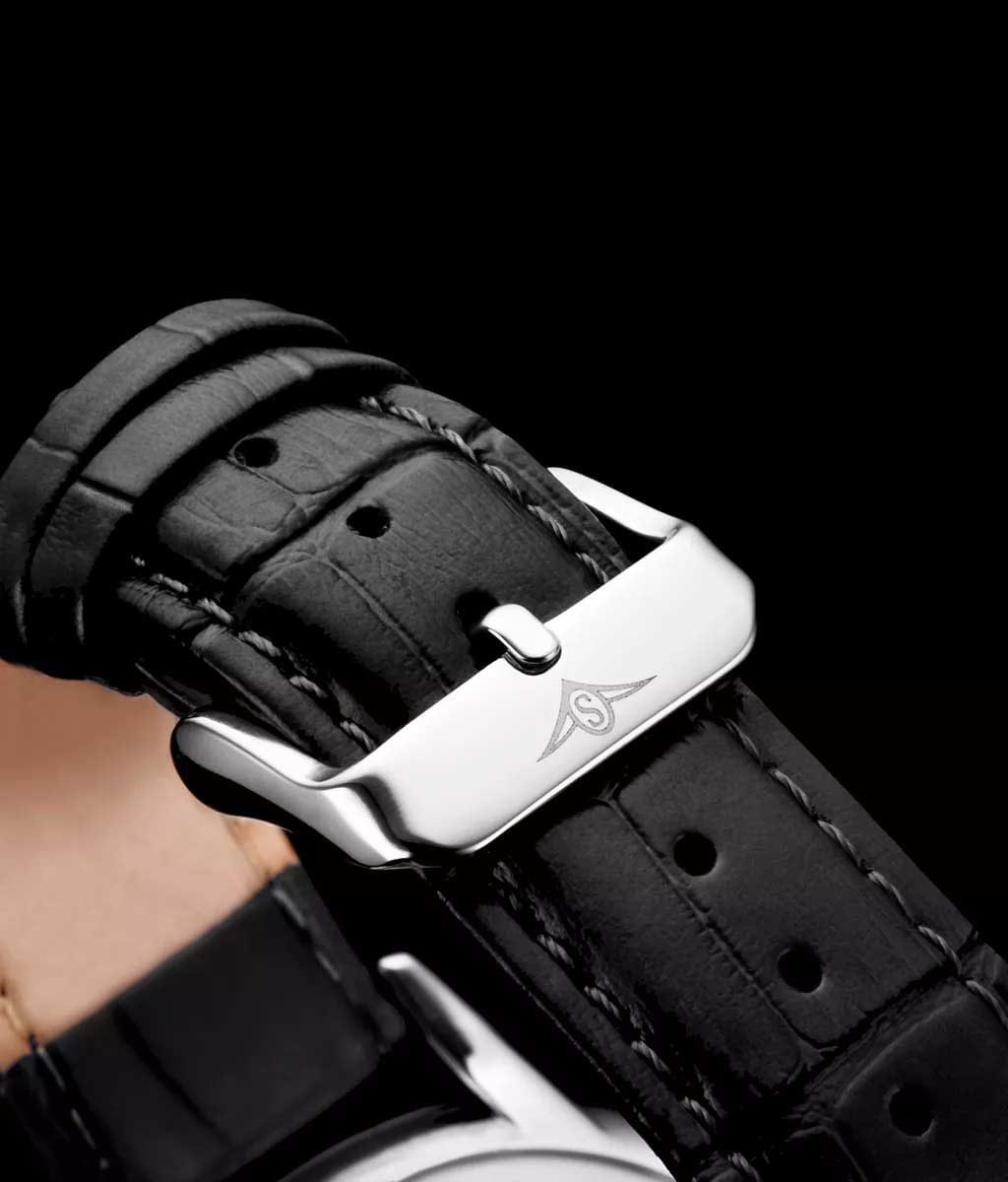 Stuhrling 3997.2 — элегантные мужские часы, объединяющие строгую классику и современную функциональность. Корпус из нержавеющей стали создают ощущение монолитной надёжности, а глубокий циферблат с вертикальной текстурой придаёт модели выразительность и характер. Кожаный ремешок на стандартной застежке обеспечивает комфорт. Крупные метки и стрелки обеспечивают идеальную читаемость. На позиции «3 часов» расположено аккуратное окно даты, подчёркивающее симметрию дизайна. Прочное стекло Krysterna защищает циферблат от царапин, а надёжный кварцевый механизм гарантирует стабильную точность. Stuhrling — выбор уверенного мужчины, ценящего сочетание функциональности, лаконичного дизайна и безупречной отделки.