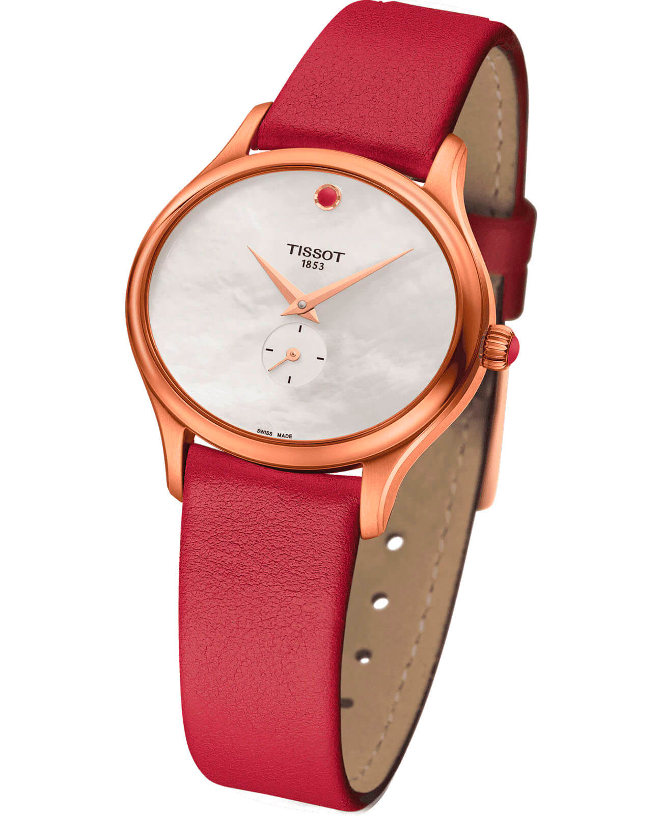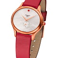 Женские швейцарские часы из коллекции Bella Ora с ярко-красным ремешком из натуральной кожи подойдут любительницам экспериментов и смелых решений.