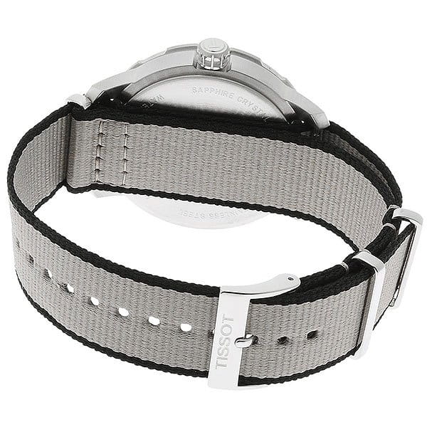 TISSOT T0954101703700 T-Sport Quickster Quartz - мужские кварцевые наручные часы Корпус этих часов среднего размера (40 мм) и выполнен из нержавеющей стали L316 металлического цвета Модель TISSOT T0954101703700 T-Sport Quickster Quartz имеет устойчивое к царапинам сапфировое стекло, тканевый ремешок серого цвета, белый циферблат Калибр механизма: ETA F06111 Класс водозащиты: 100 м / 10 АТМ (разрешается плавание и ныряние без акваланга) Дополнительные функции и особенности: отображение числа Полная заводская комплектация TISSOT: оригинальные часы, фирменная коробка, инструкция, сервисная книжка, роман о часовой фабрике, миникаталог, замшевый фирменный чехол черного цвета для хранения и/или переноски часов, кассовый и товарный чеки Международная гарантия 2 года Производство и сборка: Швейцария