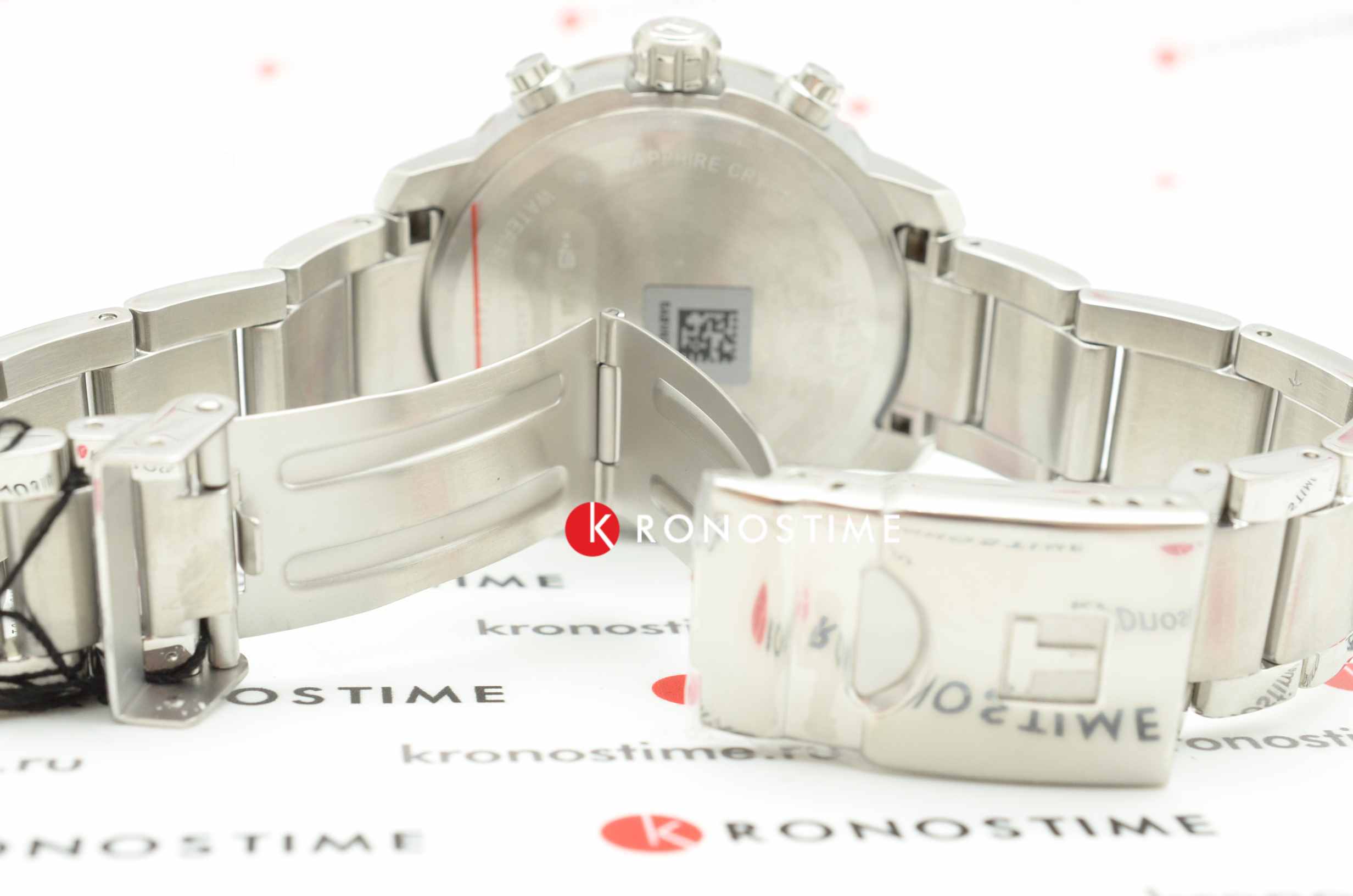 Чёрный фактурный циферблат никогда не утратит актуальности, брендовый аксессуар стильно смотрится на запястье и позволит вам всегда ощущать себя на высоте. В качестве материала для изготовления часов была выбрана нержавеющая сталь 316L, За её безупречный внешний вид и устойчивость к царапинам. Кварцевый механизм ETA G10.211 с высокой точностью хода. Стекло из сапфира. Водонепроницаемость до 10 бар. Люминесцентная подсветкаЛюминесцентное покрытиеПозволяет считывать показания времени в темноте. Производители наносят на стрелки, часовые индексы, безель или поверхность циферблата светонакопительный состав, дающий холодное свечение.. ХронографХронографФункция позволяет измерять отрезки времени с особой точностью: часы, минуты, секунды. Верным признаком хронографа является наличие на циферблате 3 дополнительных окошек-счётчиков., секундомер, индикация текущего числа, тахиметрТахиметрРазмеченная шкала, располагается на ободке или безеле часов. Тахиметр позволяет рассчитать скорость на определённом участке пути, расстояние измеряется в километрах или милях.. Габариты: 42 x 42 x 10,7 мм.