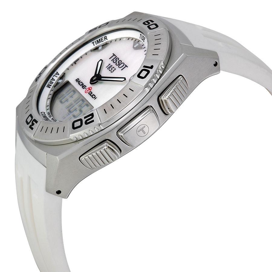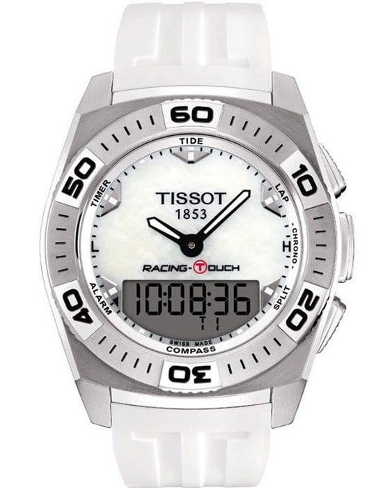 TISSOT T002.520.17.111.00 Touch Collection Racing-Touch - мужские кварцевые наручные часы. Корпус этих часов крупного размера (43 мм) и выполнен из нержавеющей стали L316 металлического цвета. Модель TISSOT T002.520.17.111.00 Touch Collection Racing-Touch имеет устойчивое к царапинам сапфировое стекло, ремешок из натурального каучука белого цвета, белый циферблат. Калибр механизма: ETA E49.301. Класс водозащиты: 100 м / 10 АТМ (разрешается плавание и ныряние без акваланга).