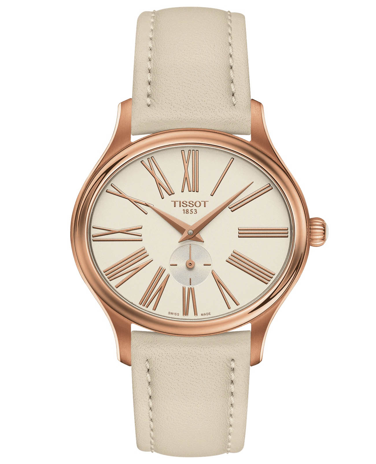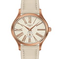 Минималистичный циферблат с PVD-покрытиемPVDУльтратонкое покрытие наносится в технике вакуумного напыления, сочетает в себе нитрид титана особой прочности со слоем золота или оксида хрома. Несёт в себе декоративную или защитную функцию. розового золота станет лучшим решением для дополнения классического или вечернего образа. Дизайнерская модель имеет ремешок из натуральной кожи кремового оттенка. Кварцевый механизм ETA 980.153 с высокой точностью хода. Надёжное сапфировое стекло. Функция EOLEOLПредставляет собой систему, уведомляющую владельца часов о необходимости замены элемента питания. За 2 недели до полного разряда батарейки секундная стрелка перестаёт ходить чётко и начинает перепрыгивать на 3-4 деления., отображение текущего числа.