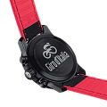 Аксессуар позволит грамотно дополнить образ, гармония чёрно-белой палитры никогда не потеряет актуальности. Наручные часы позволят всегда находиться в центре внимания. Массивный циферблат с крупной индикацией времени, симметричным расположением окошек – важная деталь для делового мужчины, привыкшего всё делать вовремя. Ремешок из тисненой натуральной кожи имеет белую прострочку, вдохновение идет от спортивных моделей. Швейцарский кварцевый механизм ETA G10.212. Сапфировое стекло. Корпус из нержавеющей стали 316L с цветным PVD-покрытиемPVDУльтратонкое покрытие наносится в технике вакуумного напыления, сочетает в себе нитрид титана особой прочности со слоем золота или оксида хрома. Несёт в себе декоративную или защитную функцию.. БезельБезельВнешний ободок, закрепляющий стекло. В спортивных часах так называется поворотное кольцо с делениями на циферблате, выполняет роль таймера – замеряет отрезки времени на шкале. Неподвижный безель – элемент декора. Однонаправленно вращающийся безель на дайверских часах позволяет фиксировать моменты погружения и выныривания на поверхность. размечен шкалой тахиметраТахиметрРазмеченная шкала, располагается на ободке или безеле часов. Тахиметр позволяет рассчитать скорость на определённом участке пути, расстояние измеряется в километрах или милях.. Водонепроницаемость до 10 бар. Люминесцентная подсветкаЛюминесцентное покрытиеПозволяет считывать показания времени в темноте. Производители наносят на стрелки, часовые индексы, безель или поверхность циферблата светонакопительный состав, дающий холодное свечение.. Секундомер, хронографХронографФункция позволяет измерять отрезки времени с особой точностью: часы, минуты, секунды. Верным признаком хронографа является наличие на циферблате 3 дополнительных окошек-счётчиков., индикация числа. Диаметр корпуса: 45,5 мм.