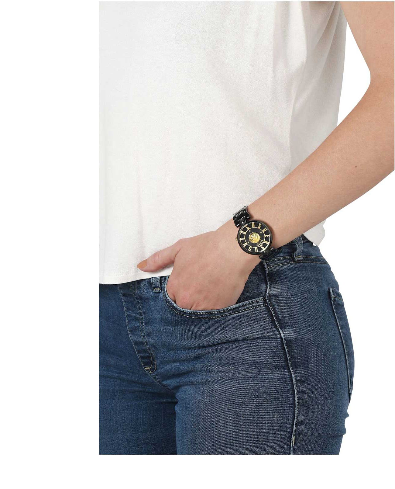 Эти эффектные дизайнерские часы станут источником восхищения, придав вашему образу еще больше загадочности. Модные женские часы Lodovica с круглым корпусом. Циферблат украшен надписью бренда и крошкой кристаллов Swarovski. Часовые метки в виде точек. В центре циферблата объемный лого в форме головы льва. Смещенная заводная головка. Стальной браслет.