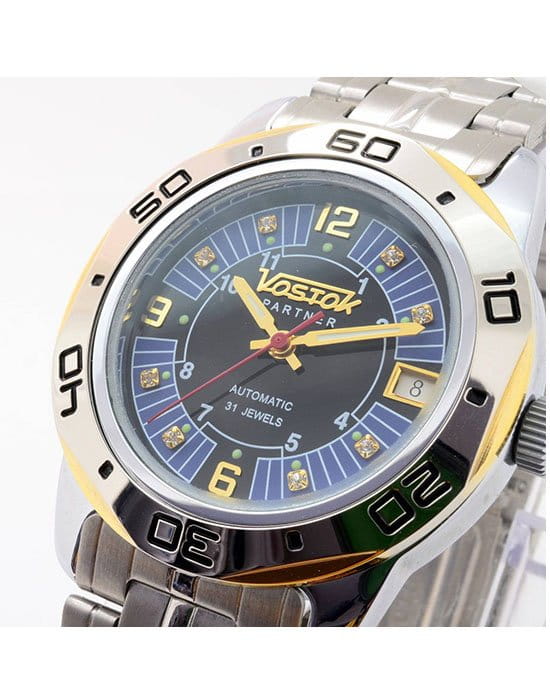 У мужских часов Восток Партнёр 291142 корпус латунный, браслет у часов сделан из прочной нержавеющей стали, механизм часов балансовый (пружинный), точность хода +40/ -20 сек. в сутки, у данных часов минеральное (кварцевое) стекло, поцарапать такое стекло очень не просто (оно имеет значение 7 по шкале Мооса - шкала минералогической твёрдости), ещё одним достоинством данного стекла является прочность, расколоться такое стекло может только от довольно сильного удара, именно по этим причинам этот вид стёкол наиболее распространён в часовой индустрии, часы обладают водозащитой 30 метров (или 3 атмосферы), поэтому они не испортятся от брызг воды, но для плавания не подходят.