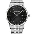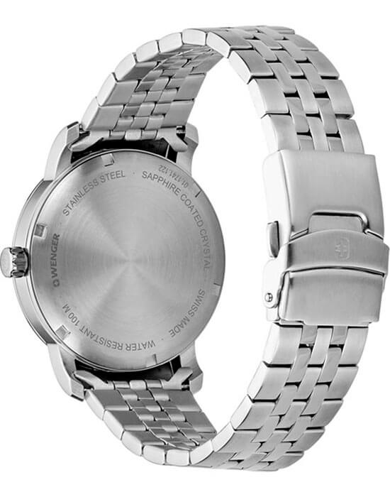 Швейцарские мужские часы в классическом стиле Wenger 01.1741.122, кварцевый механизм с высокой точностью. Класс водозащиты: 100 метров, позволит плавать, нырять и заниматься другими водными видами спорта. Корпус часов изготовлен из стали, цвета.